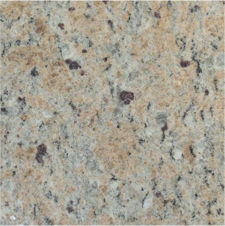 De uma tonalidade base amarela, o granito Amarelo Vitória conjuga cores quentes como os alaranjados e os rosados num material gracioso.