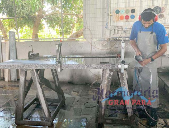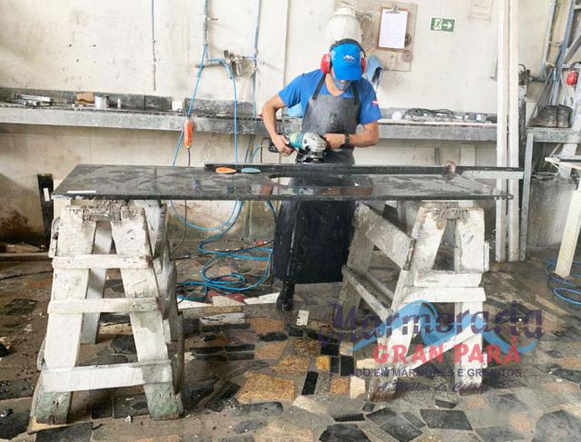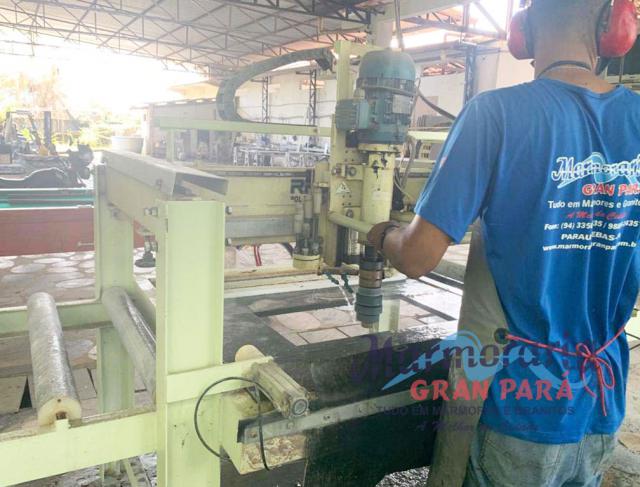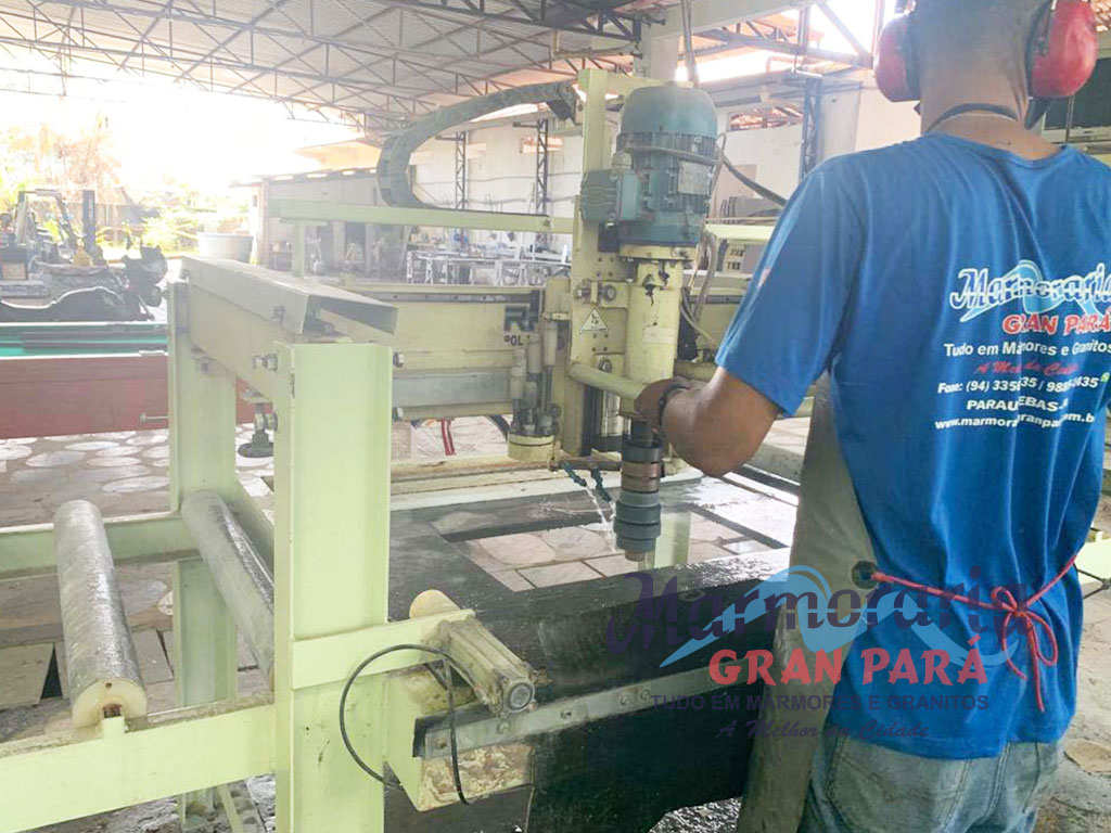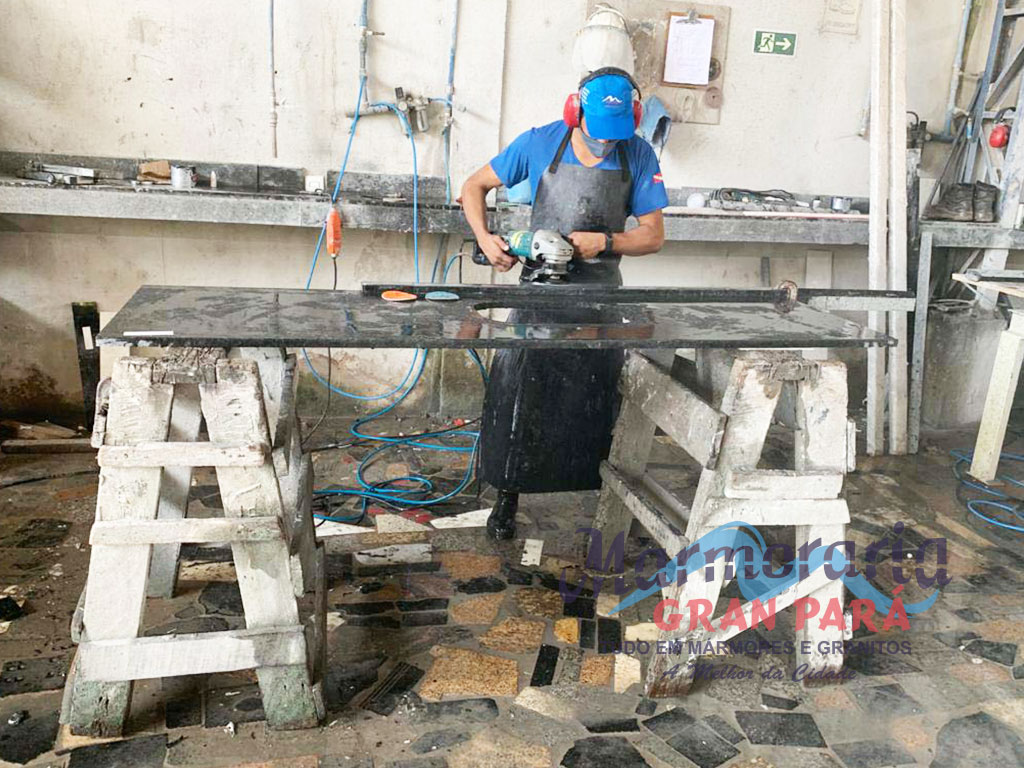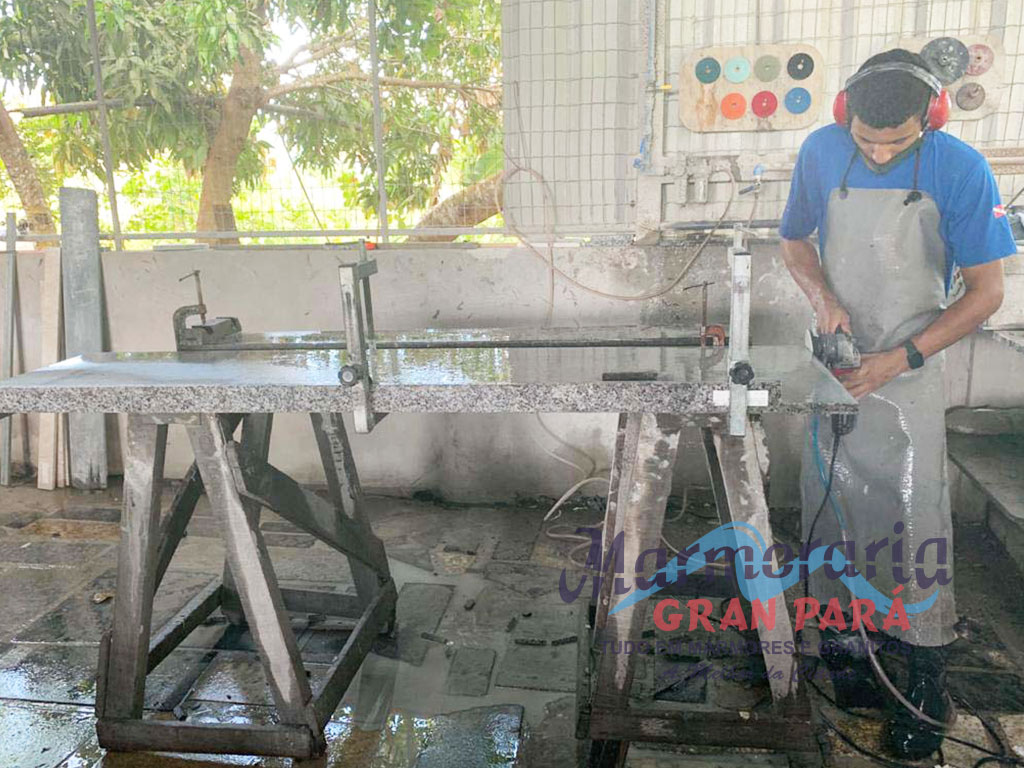 Os granitos recebem uma camada de resina para garantir a qualidade do acabamento e polimento.