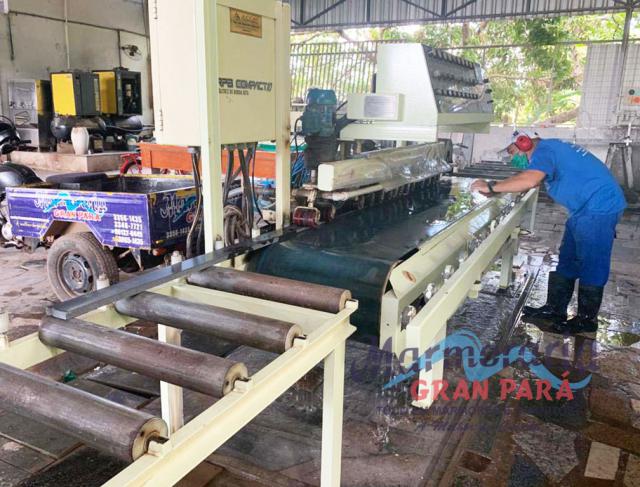 Os teares são máquinas de grande porte que cortam os blocos em chapas de 1,5 a 3cm.
